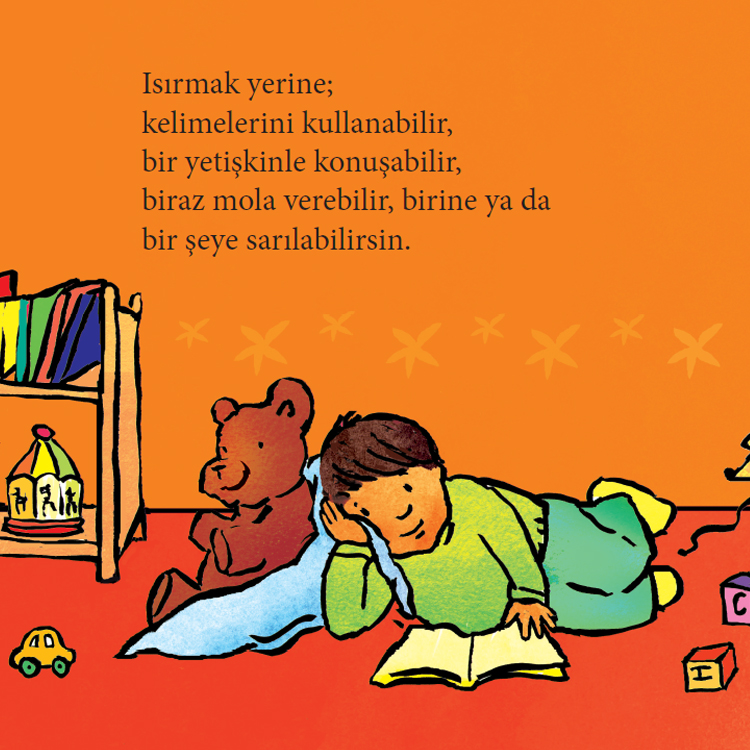 Dişler Isırmak İçin Değildir, çocukların neden ısırmak isteyebileceğine dair nedenler sunar. Bazen çocuklar; aç, yorgun, huysuz, sinirli, öfkeli, sıkılmış, sıkıntılı veya ilgi ararken ısırabilirler. Bu kitap, çocukların ısırmak yerine yapabilecekleri olumlu öneriler sunuyor: soğuk bir içecek içmek, sarılmak, bir yetişkinle konuşmak... Kitabın sonunda yer alan bölüm ise ebeveynler ve diğer bakım verenler rehber niteliğinde.