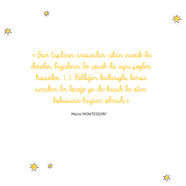 Bir ağacın kalbini dinleyin, bir salyangoz çiftliği kurun, havuçlu kek pişirin, minik dünyaları gözlemleyin, yağmurda eğlenin, yapraklardan bir çelenk yapın, kuşlarla ilgilenin..