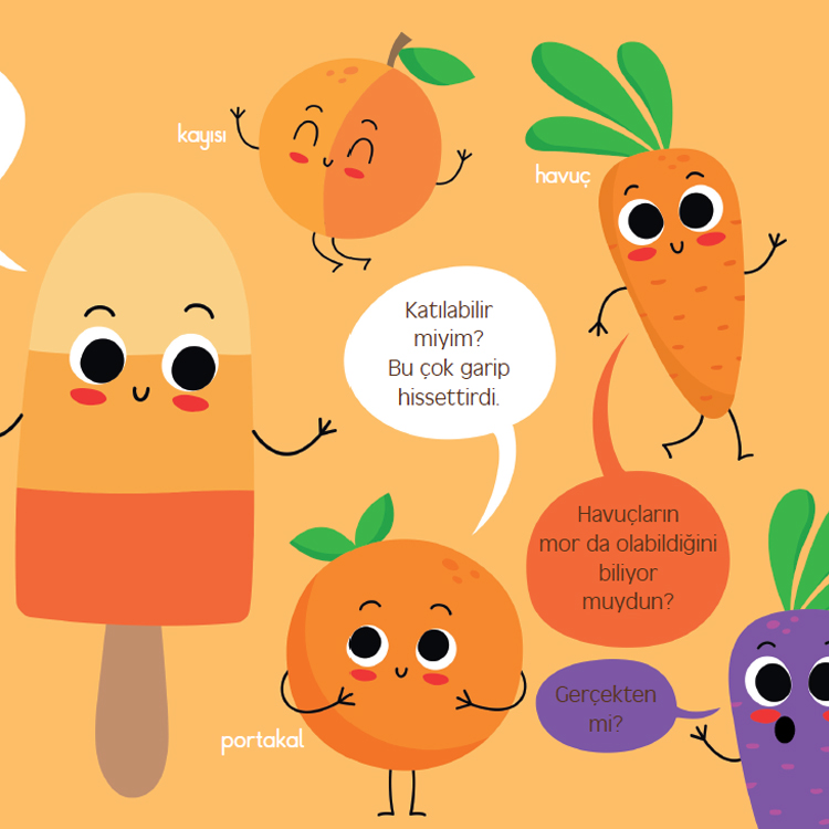 Çocuklar, sevimli yiyecek karakterlerinin yardımı ve teşvikiyle şekilleri öğrenmekten büyük keyif alacak. Dondurmalar, meyveler ve hepsi çok lezzetliler! Bu karakterlerle renkleri öğrenmek çok eğlenceli!
